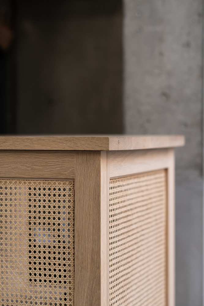 - カウンター : ナラ無垢材+ラタン編み