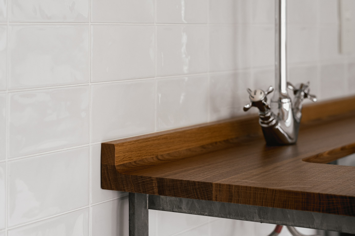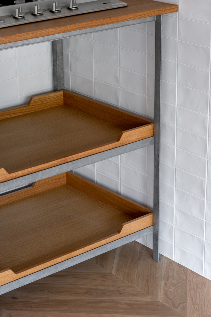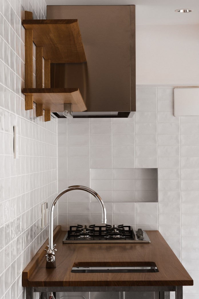 - キッチン : ナラ無垢材天板+スチール亜鉛メッキ
