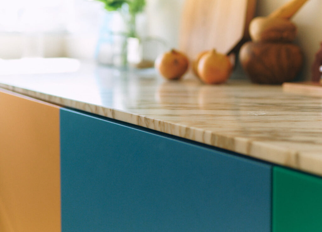 キッチンカウンター : キャビネット(ikea)+大理石+扉(Reform)
