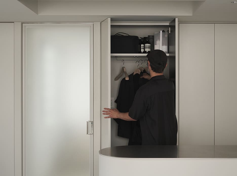 - シンクカウンター:ステンレス+シナベニヤ塗装仕上げ